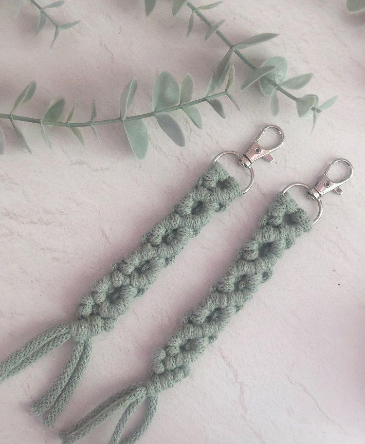 Learn how to macramé with this beginner's create it yourself key ring kit. The kits comes with 100% recycled cotton cord ready cut in your choice of colour, a key ring clasp and an information card with QR codes on which give you access to written and video instructions on how to make one of the key rings in the picture.